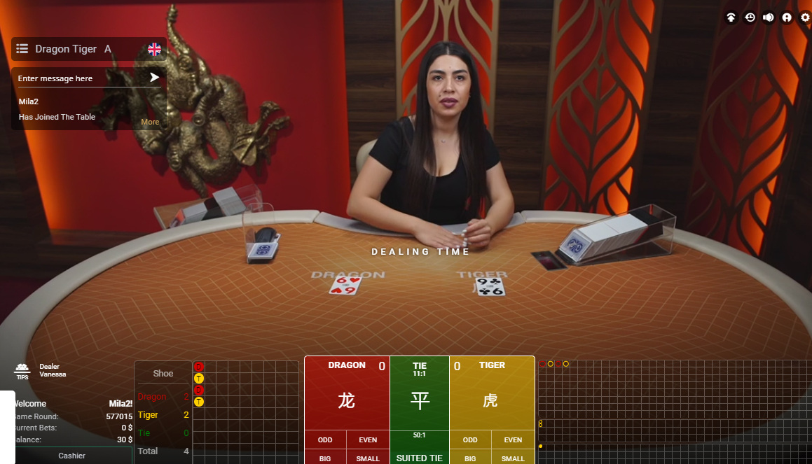 На сайте Asia Gaming указано, что они предлагают игры Dragon Tiger с живыми дилерами. Мне пока не удалось в неё поиграть, поэтому это всё, что я знаю на данный момент.