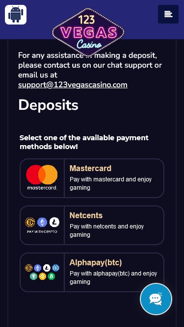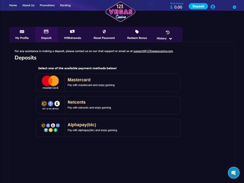 На момент нашего посещения этого игорного заведения в казино 123 Vegas не действовала программа лояльности.