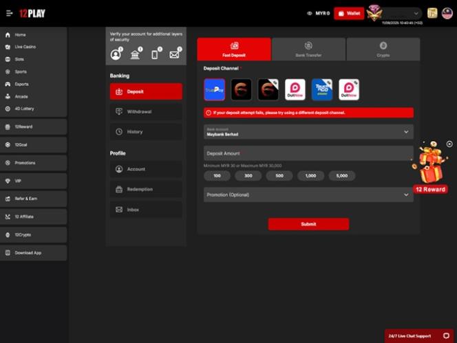 12Play Casino — это онлайн-казино и сайт для ставок на спорт, регулируемый и лицензированный правительством Черногории . Казино работает под юрисдикцией E-Gambling Montenegro и ориентировано на игроков из Сингапура , Малайзии, Таиланда и Вьетнама.