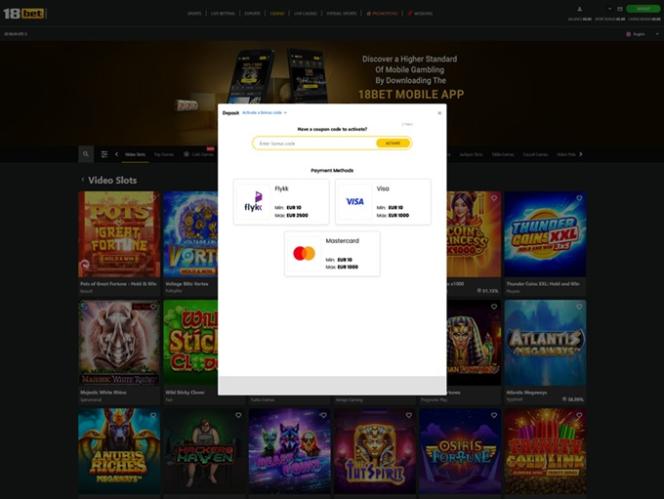Варианты банковских операций в 18bet Casino