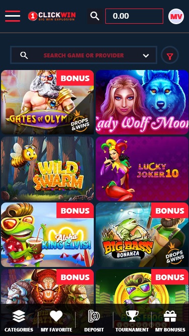 Играя в казино 1ClickWin, вы сможете насладиться одними из лучших онлайн-слотов, таких как Book of Rampage, Elvis Frog in Vegas, Book of Aztec, Lucky Joker 10, Lucky Jack Tut's Treasure, Golden Piggy Bank, Bonanza Billion, Hot Fruits 100, Last Wolf Moon, Book of Demi Gods 2 и многими другими.