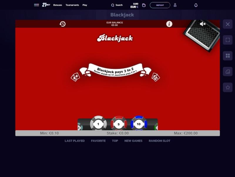 21bit Casino Blackjack (Playtech)Расширять