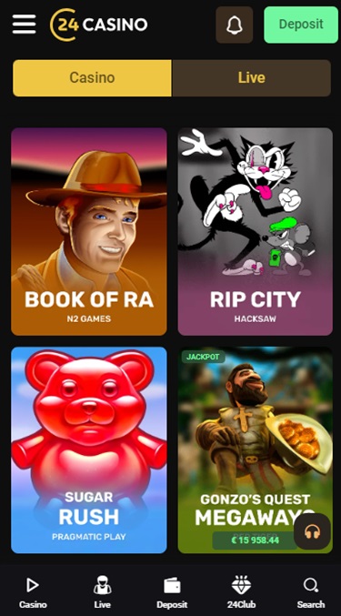 Кроме того, поклонники игр с живыми дилерами могут попытать удачи в различных игровых шоу, предлагаемых в 24 Casino. Эти игры известны своими совершенно оригинальными идеями и механиками и являются отличной альтернативой стандартным настольным играм. Мы рекомендуем сыграть в Lightning Storm, Boom City, Crazy Coin Flip, Mega Wheel, Crazy Pachinko и Cash or Crash.
