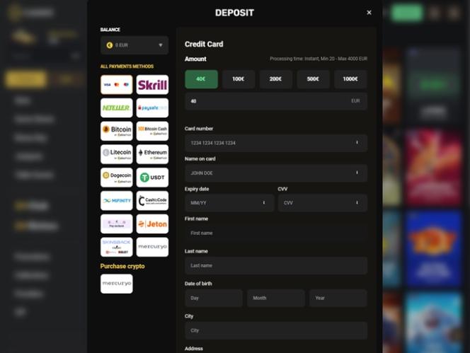 Наши первые впечатления от платформы были исключительно положительными. Нас встретила эстетически приятная обстановка, сочетающая современный минималистичный дизайн казино со стильными произведениями искусства, демонстрирующими роскошный образ жизни, которого могут достичь игроки, получив крупные выигрыши.
