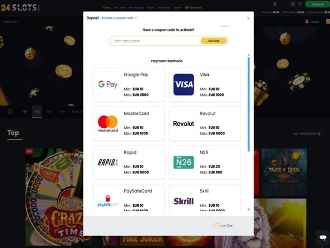 Независимо от того, предпочитаете ли вы играть на домашнем компьютере или в дороге с помощью портативных устройств, таких как мобильный телефон или планшет, вы сможете без проблем получить доступ ко всей игровой библиотеке. Надежное интернет-соединение со стабильной передачей данных обеспечит быструю загрузку всех игр и позволит вам в полной мере насладиться азартными играми, которые предлагает казино 24Slots.
