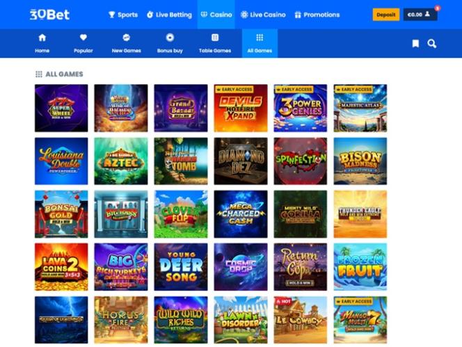 Казино 30Bet.com предлагает огромную библиотеку азартных игр, включающую множество онлайн-слотов, множество мгновенных игр и все другие жанры игр казино, которые только можно себе представить. Кроме того, здесь представлен впечатляющий выбор способов оплаты, а также привлекательная программа акций и многое другое.
