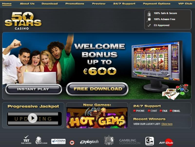 50 Stars Casino — это онлайн-казино, появившееся в 2005 году. Они гордятся тем, что предоставляют передовые системы казино и обеспечивают захватывающий игровой процесс своим игрокам благодаря программному обеспечению Playtech. Игроки могут сразу же начать играть в режиме мгновенной игры или потратить несколько минут на загрузку бесплатного программного обеспечения. На сайте представлен широкий выбор игр, разнообразные акции и круглосуточная поддержка по телефону, в чате, по факсу и электронной почте.