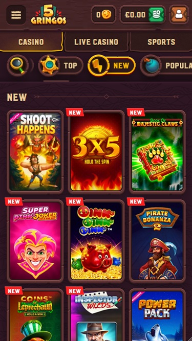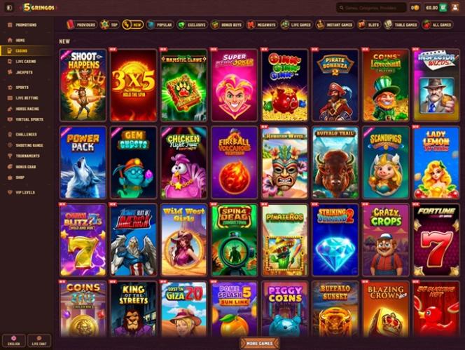 5Gringos также является домом для 225 Другие игры перечислены ниже: