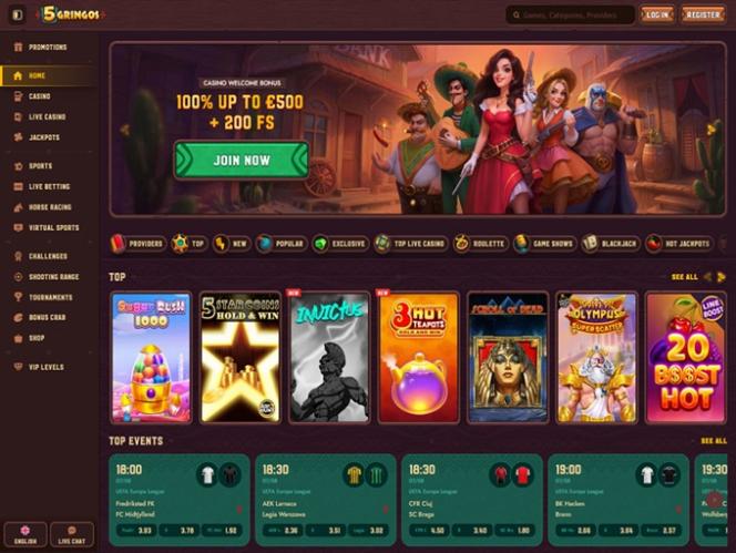 Казино 5Gringos — это онлайн-букмекерская контора, управляемая компанией Rabidi NV и имеющая лицензию Кюрасао. Казино оформлено в мексиканском стиле и предлагает обширную библиотеку игр, поддержку криптовалют и отличную VIP-программу. Все это делает 5Gringos хорошим выбором для игроков, желающих совершить путешествие на юг, за границу.Информация о казино