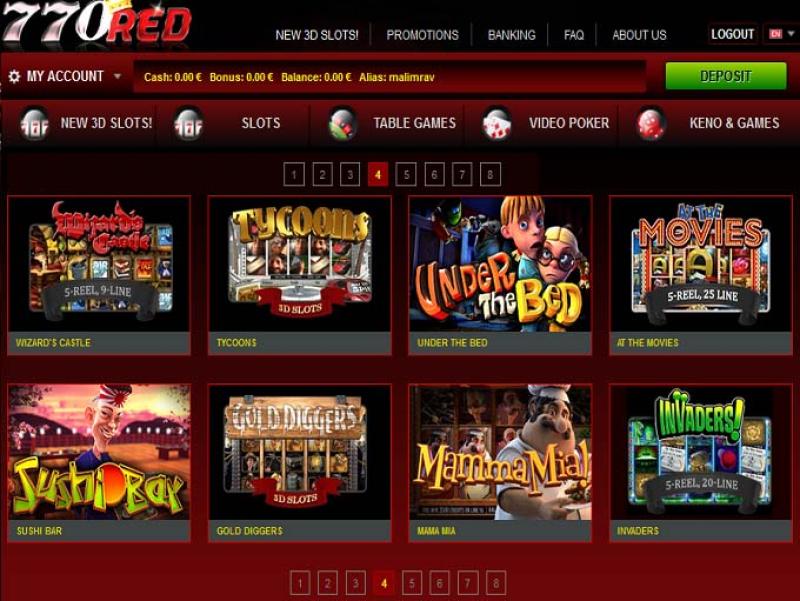 Казино 770red работает на программном обеспечении BetSoft, Multi Slot Casinos, OpenBet and Parlay Entertainment , и его библиотека игр размещена на веб-платформе, позволяющей играть непосредственно через интернет-браузер. В настоящее время мобильная платформа для ставок на смартфонах и планшетах отсутствует.Другие игры