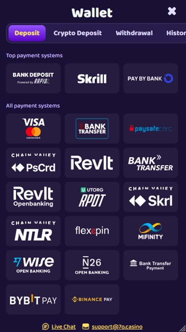 Кроме того, на 7Oasis вы можете играть в игры с живыми дилерами, созданные одними из лучших разработчиков программного обеспечения для онлайн-казино . А если вы ищете интерактивный контент с традиционной атмосферой казино, то вам стоит обратить внимание на Lightning Roulette, Venice BJ 4, Venice BJ 2, Venice Roulette, Bar Roulette 2000X, Bar BJ 5, Super Stake Roulette, Live Roulette, Lightning Storm, Crazy Time, Red Door Roulette, Wheel of Fortune, Dead or Alive: Saloon, Bet On Poker, War of Bets, Caribbean Stud Poker, Mega Ball, Poker 6+, Auto Roulette, Flash Roulette, Golden Chip Roulette и другие популярные игры.