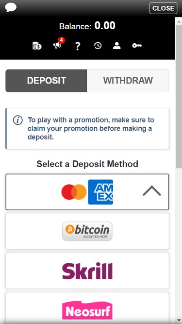 Банковская система — слабое место, но это скорее недостаток казино, ориентированного на ограниченный американский рынок, чем что-либо ещё. Сайт принимает депозиты и снятия средств с помощью кредитных карт, электронных кошельков и биткоинов, но время обработки вывода средств может составлять от 2 до 7 рабочих дней в зависимости от способа. На мой взгляд, это слишком медленно, но сайт хорошо справляется с обеспечением стабильного вывода средств.