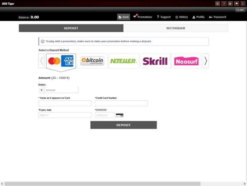Казино 888 Tiger работает на программном обеспечении Rival, Vivo Gaming and Dragon Gaming , а игры предоставляются через веб-платформу, которая загружается в вашем браузере. Приятно, что не нужно скачивать никакого программного обеспечения, и вы сможете играть на своем смартфоне или планшете, если захотите.
