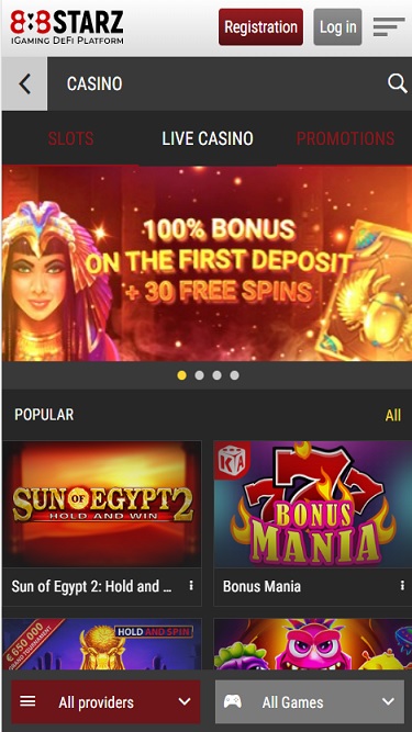 888StarzBet предлагает многое: от ставок на спорт, игры в покер и живого казино до огромного выбора слотов. Безусловно, абсолютная гордость оператора — это интегрированная система вознаграждений, использующая чрезвычайно популярные функции DeFi (майнинг, стейкинг, фарминг...) и токены 888.