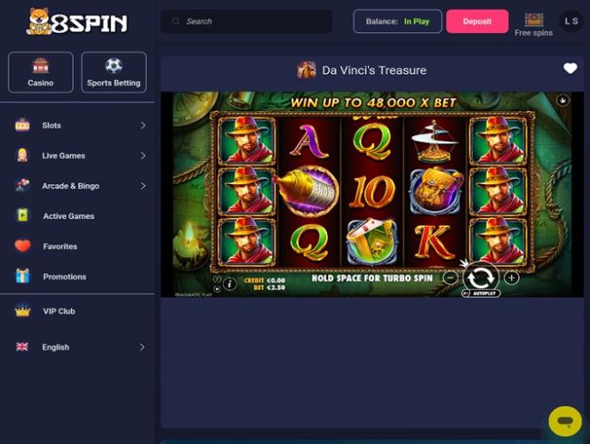 8Spin — это многофункциональное онлайн-казино для игроков из Канады, ориентированное на предоставление полного спектра азартных игр. Здесь они смогут насладиться огромным выбором игр, включая онлайн-слоты, игры с живыми дилерами, настольные игры и мгновенные ставки, а также различными вариантами ставок на спорт. Бренд также известен своей выгодной программой акций и бонусов.