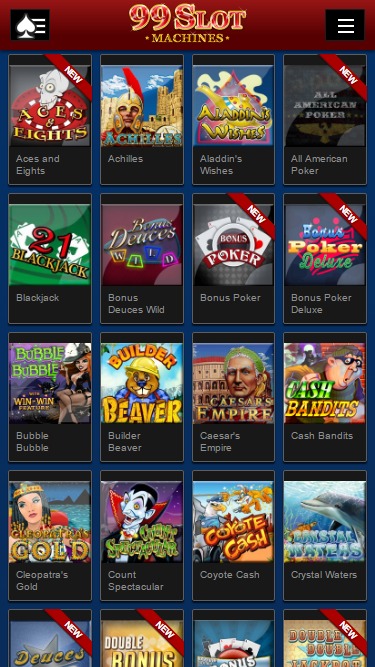 99 Slot Machines также является домом для 25 Другие игры перечислены ниже: