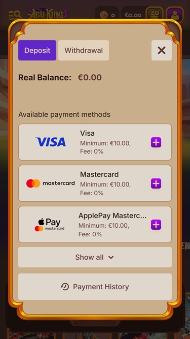Что касается программы лояльности, в казино Abu King действует система, в рамках которой игроки проходят пять уникальных уровней. Чем больше вы вносите депозитов и играете в любимые игры, тем больше вознаграждений вы получите, включая более высокие лимиты на вывод средств, эксклюзивные предложения, персонального VIP-менеджера, акции на сайте и кэшбэк.