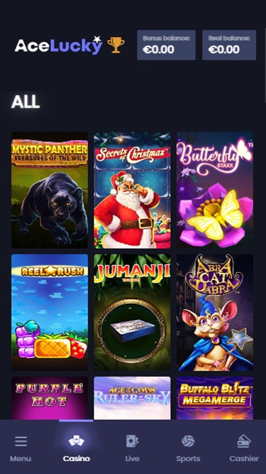 В казино Ace Lucky представлены сотни видео- и классических слотов от ведущих разработчиков, отличающихся разнообразными темами и функциями. Также доступны прогрессивные джекпоты с крупными денежными призами. Игра доступна и для мобильных устройств, позволяя играть со смартфона или планшета.