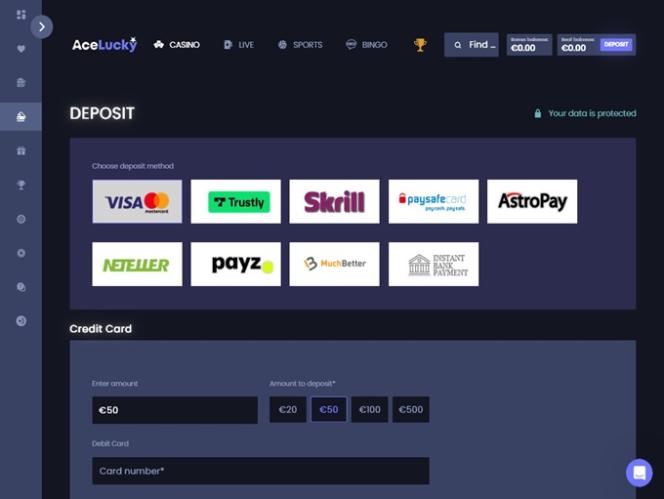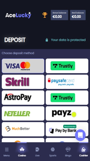 Помимо стандартных игр казино, Ace Lucky Casino также предлагает своим клиентам полноценное казино с живыми дилерами.