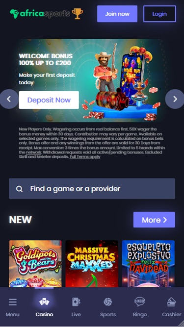 AfricaSports, ранее известное как Casinex, — это онлайн-казино, предлагающее игрокам из Южной Африки и Великобритании впечатляющий выбор игр и ставок на спорт. Бренд предлагает широкий ассортимент игр, включая слоты на реальные деньги, игры с живыми дилерами, мгновенные игры и настольные игры, а также многочисленные акции и бонусы.