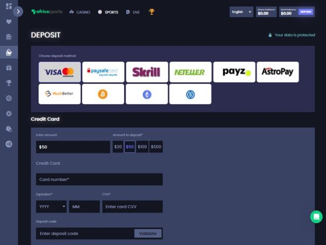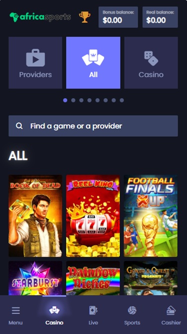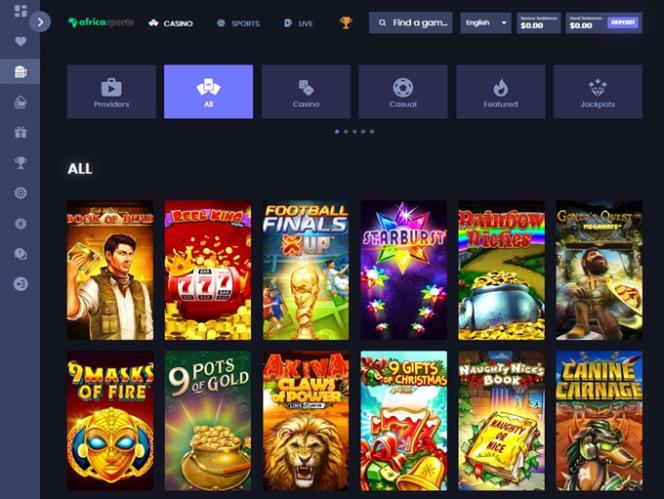 Наконец, есть букмекерская контора AfricaSports, раздел ставок на спорт с впечатляющим выбором спортивных и киберспортивных событий, на которые можно делать ставки, а также различными вариантами ставок, включая ставки в режиме реального времени.