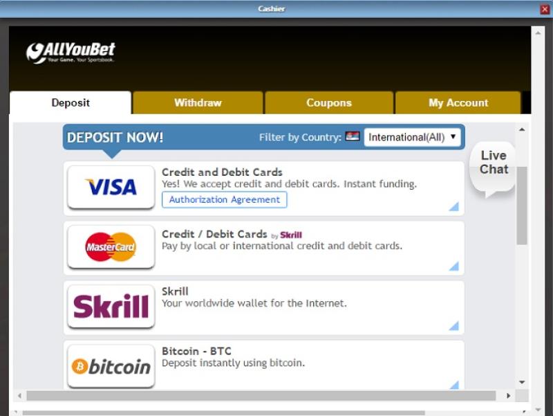 Помимо игр казино, All You Bet Casino также предлагает игрокам полноценную букмекерскую контору.