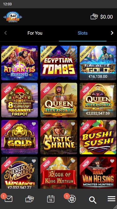 Казино All Slots работает на программном обеспечении Microgaming, Net Entertainment, Evolution Gaming, Ezugi, Rabcat, Pragmatic Play, Red Tiger Gaming, Triple Edge Studios, Northern Lights Gaming, Stormcraft Studios, Switch Studios, Electric Elephant Games, All41 Studios, Gameburger Studios, Pulse 8 Studios, Neon Valley Studios, SpinPlay Games, Real Dealer Studios, GONG Gaming, On Air Entertainment, Buck Stakes Entertainment, Games Global, Foxium, Just For The Win, PearFiction Studios, Wild Streak Gaming, Slingshot Studios, Fortune Factory Studios, Crazy Tooth Studio, Alchemy Gaming, Snowborn Games, Gold Coin Studios, Half Pixel Studios, Eurostar Studios and Aurum Signature Studios , которое предоставляет своим клиентам сотни игр. Казино доступно как в загружаемой, так и в веб-версии, а также имеется мобильная версия сайта, позволяющая игрокам посещать его со своих смартфонов и планшетов.