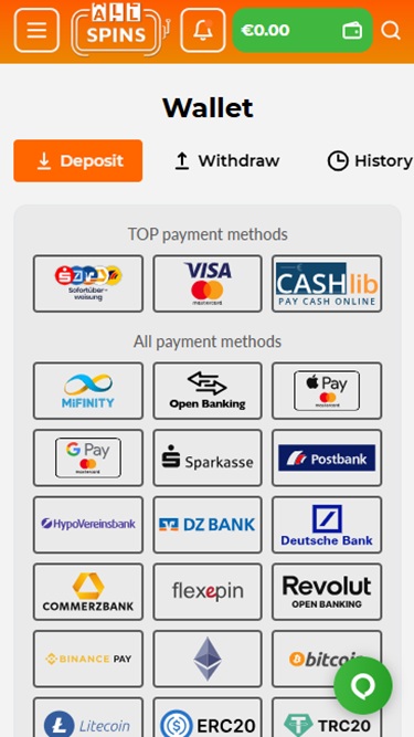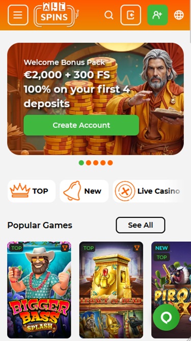 Однако тем, кто хочет узнать все подробности об AllSpins, следует посетить страницу с условиями использования внизу главной страницы, разделы, посвященные ответственной игре, политике конфиденциальности и службе поддержки клиентов. Вы можете открыть выпадающее меню вверху сайта, чтобы получить доступ к достижениям, магазину, турнирам и всем категориям игр.