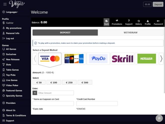 Казино Always Vegas работает на программном обеспечении BetSoft, Rival and Fresh Deck Studios , и его библиотека игр доступна как через загружаемое программное обеспечение, так и через веб-платформу.Другие игры
