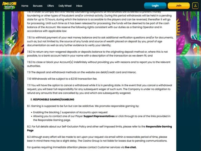 Операторы Amazon Slots Ontario приглашают игроков из Онтарио присоединиться и ознакомиться со всеми предлагаемыми ими играми казино. Игроки из других стран не принимаются.