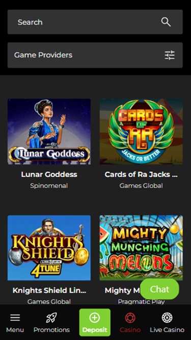 Здесь вы можете выбрать игры от легендарных и ведущих студий, таких как Microgaming , Relax Gaming , Pragmatic Play и Play 'N Go , а также от многочисленных более мелких провайдеров, заслуживающих всеобщего внимания, таких как Felt Gaming, Puls 8 Studios и Qora Games.