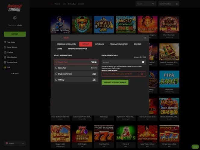 В Anarchy Casino вы можете получить доступ к играм от более чем 95 студий-разработчиков программного обеспечения, что, безусловно, немало. Этот бренд может обеспечить бесчисленные часы развлечений, позволяя вам открывать и просматривать уникальные игровые возможности.