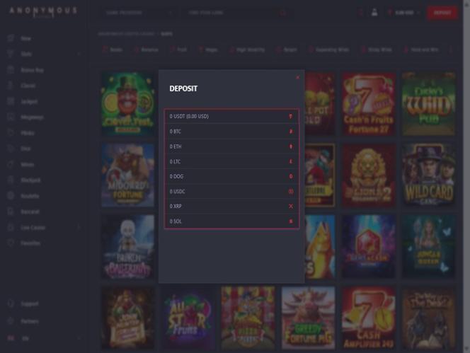 Anonymous — это казино, принимающее только криптовалюту и не требующее верификации , и, как и следовало ожидать, процесс регистрации здесь максимально прост. Чтобы стать участником казино, вам потребуется всего лишь секунда, чтобы ввести свой адрес электронной почты и выбрать пароль. На панели управления игрока вы заметите, что здесь все довольно просто, и мы уверены, что ориентироваться здесь будет легко.