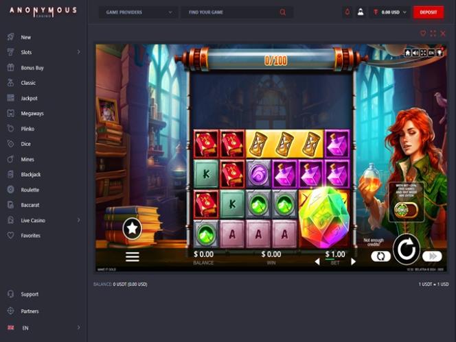 Anonymous Casino — это онлайн-казино, управляемое опытной компанией в сфере iGaming, ориентированное на игроков из Германии, Канады и Новой Зеландии. Для удобства игроков сайт локализован на немецкий, английский, испанский, норвежский, португальский и русский языки. Обратите внимание, что на момент нашего визита этот бренд работал без игорной лицензии.