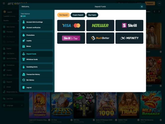 В разделах, посвященных спорту и казино, доступны приветственные бонусы. ArcaneBet также проводит турниры и предлагает несколько других акций, таких как Weekend Cashback Booster.