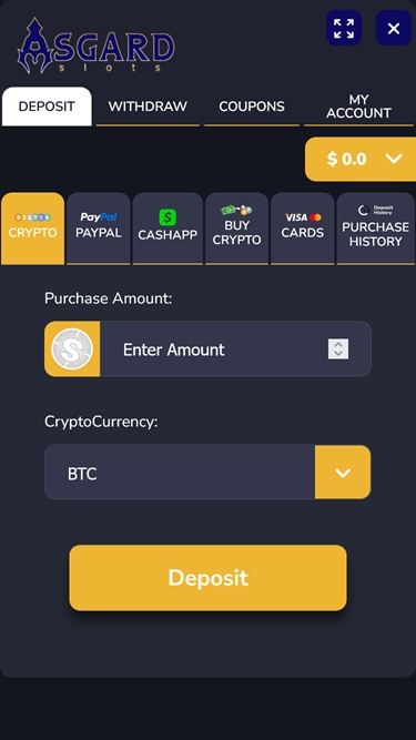 Для пополнения счета в криптовалюте Asgard Slots предлагает простое руководство по началу работы с биткоином и другими криптовалютами.