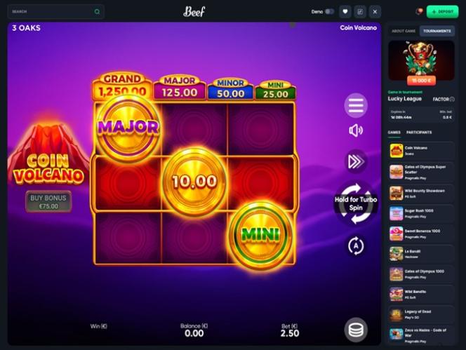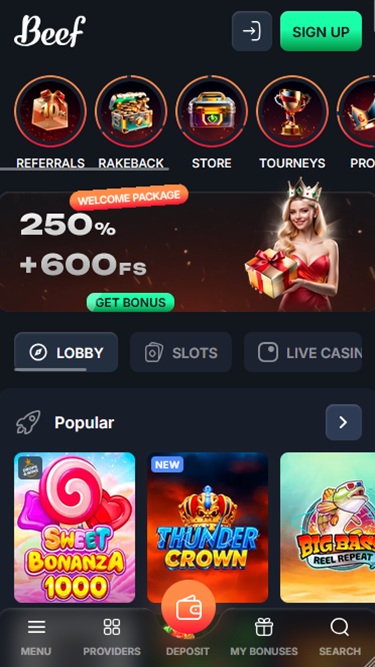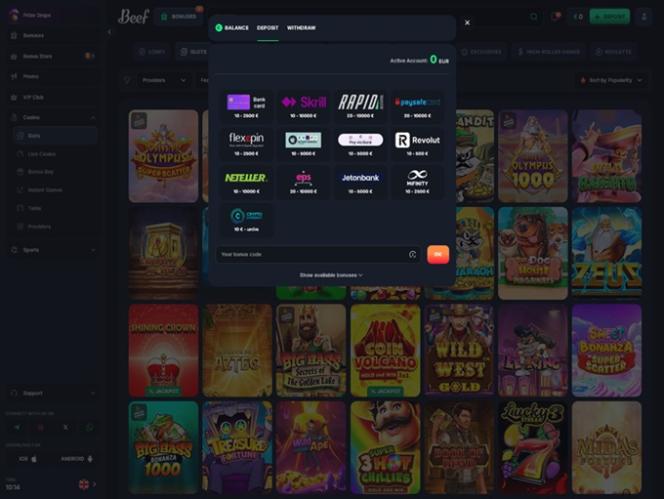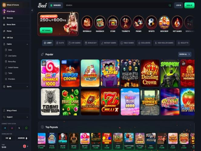 Запущенное в 2025 году, Beef Casino — это масштабный игорный сайт с огромным выбором игр казино и возможностями для ставок на спорт. Бренд приветствует игроков из Германии, Австрии и Швейцарии. Он стремится предложить им полноценный игровой опыт с сотнями онлайн-слотов, играми с живыми дилерами, настольными играми и мгновенными играми, а также множеством вариантов ставок, бонусов, акций и турниров.
