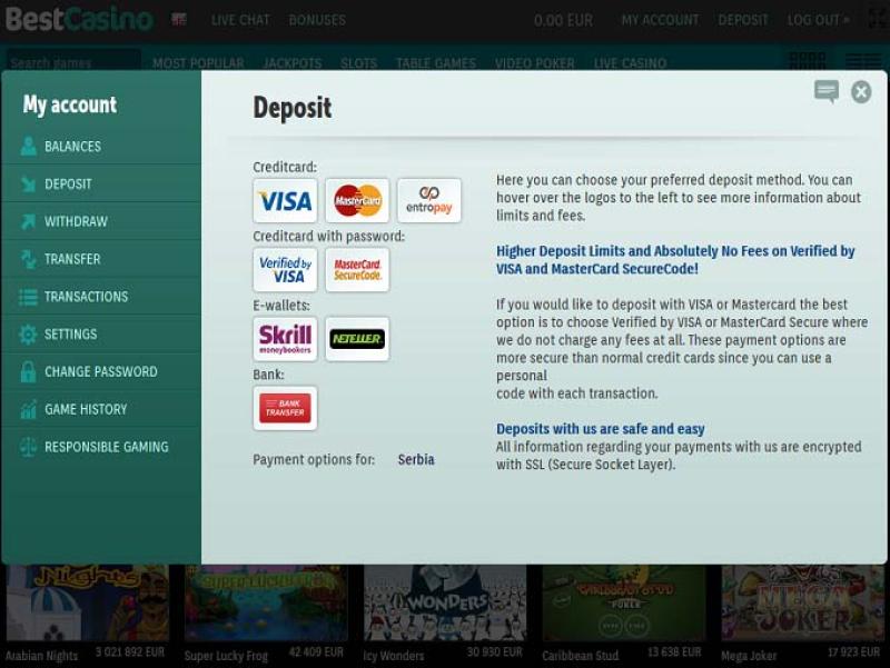 Казино BestCasino работает на платформе Net Entertainment , и игры предоставляются через веб-платформу, позволяющую игрокам играть непосредственно в веб-браузере. Также доступна мобильная версия сайта для тех, кто предпочитает играть на смартфонах и планшетах.