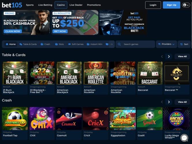 Bet105 — это криптовалютная и ориентированная на игроков из СШАбукмекерская контора и онлайн-казино , которое привлекло наше внимание с момента перехода на главную страницу казино благодаря разнообразию доступных онлайн-игр, прекрасной атмосфере и удобному интерфейсу , который позволил нам легко сориентироваться с первого же клика.