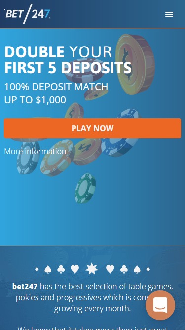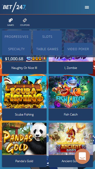 В Bet247 представлен неплохой выбор классических и современных видеослотов. Игры стандартные, как и в любом казино RTG, но ассортимент впечатляет, и тематики игр предостаточно. Во многих играх есть прогрессивные джекпоты, а также значительная часть игр адаптирована для мобильных устройств.