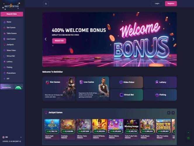 Бонусные предложения, доступные в казино Bet24Star, очень привлекательны, и игроки, несомненно, почувствуют себя желанными гостями и получат удовольствие от игры на этом игорном сайте.