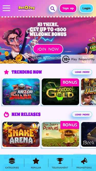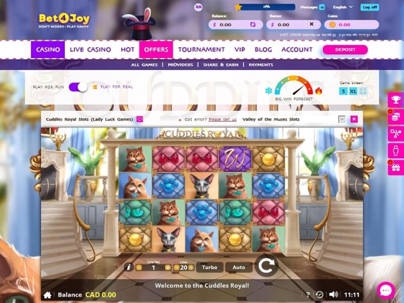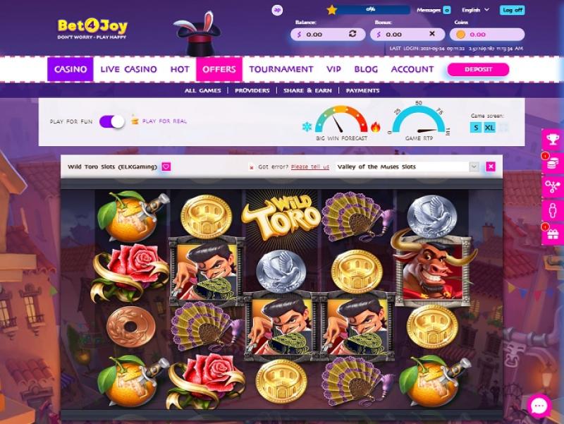 В казино Bet4Joy представлено множество слотов, в том числе видеослоты от Playtech и GameOS. Также доступна сеть прогрессивных джекпотов Playtech, и игроки могут выиграть миллионы долларов.