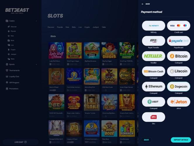 Навигация по этому сайту довольно проста. Он создан с использованием новейших доступных технологий и полностью удобен для пользователя. Что касается эстетики, BetBeast может похвастаться привлекательными дизайнерскими решениями, которые легко привлекут любителей онлайн-азартных игр.