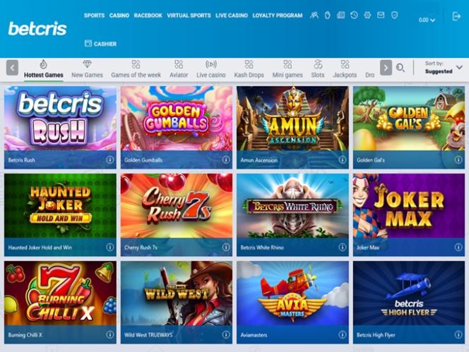 Хотя Betcris освещает различные виды спорта и события, связанные со спортивными ставками, как всегда, в центре нашего внимания находятся онлайн-игры казино , поэтому давайте заглянем в лобби казино.