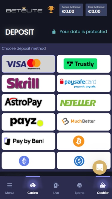 Как и многие другие известные казино на рынке, BetElite также использует новейшие технологии 128-битного шифрования SSL и TLS в качестве основных средств защиты, поскольку они доказали свою эффективность в борьбе со злонамеренными кибератаками.