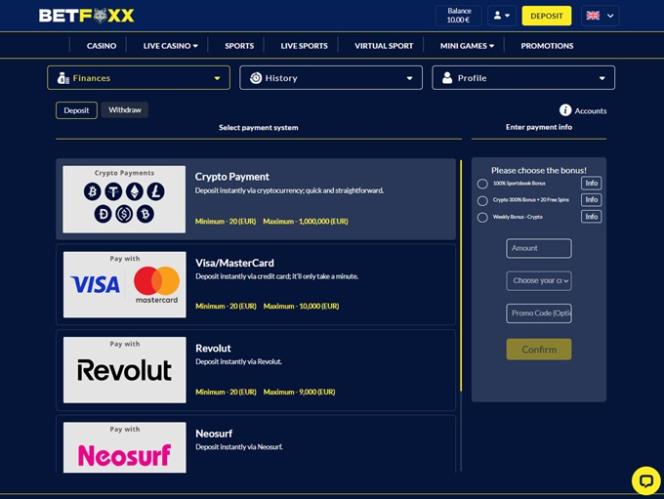 Игрокам, решившим попытать удачу на этом сайте, следует регулярно проверять вкладку «Акции», поскольку операторы казино иногда добавляют новые функции позже. Мы полагаем, что это может быть справедливо и для BetFoxx Casino.