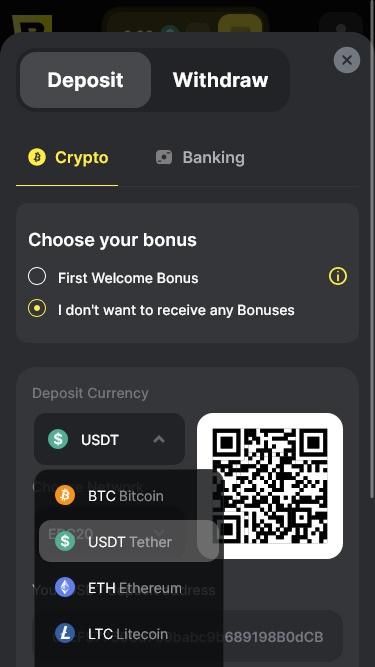 Игроки могут управлять своими средствами, используя как фиатные валюты, так и криптовалюты.