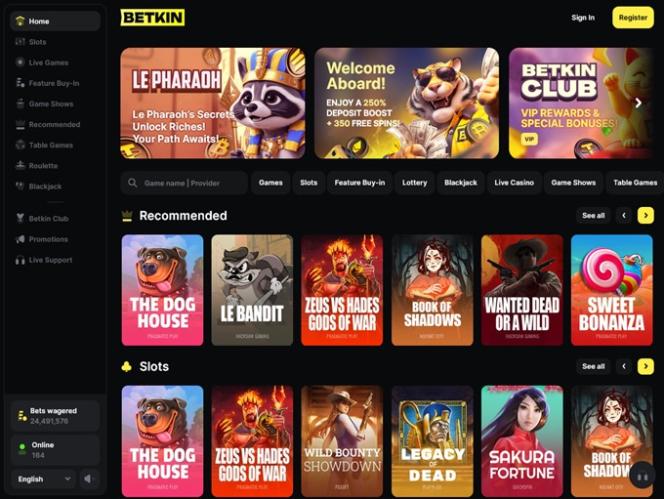 Betkin Casino — это игорный сайт, стремящийся предложить игрокам всесторонний и качественный игровой опыт, предоставляя разнообразный выбор игр, включая слоты на реальные деньги, игры с живыми дилерами и настольные игры. Игроки смогут воспользоваться различными бонусами и акциями, а также принять участие в выгодной программе лояльности. Компания также принимает криптовалюты, такие как Bitcoin, в качестве допустимых способов оплаты.