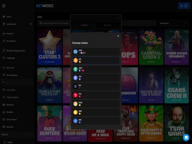 Для получения полного доступа к игровому контенту, а также ко всем другим функциям казино, вам необходимо зарегистрироваться в Betmode Casino. Сделать это легко: подключив свой криптовалютный кошелек, зарегистрировавшись с помощью адреса электронной почты или создав новую учетную запись через популярные платформы, такие как Telegram, Google и X.