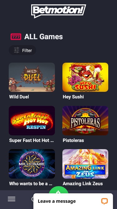 Betmotion также является домом для 166 Другие игры перечислены ниже: